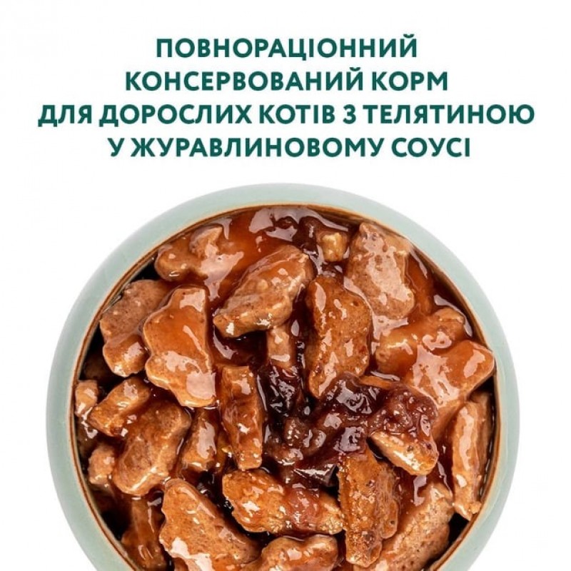 Упаковка повнораціонного консервованого корму Optimeal для дорослих котів з телятиною у журавлиновом 259.0 ₴ |